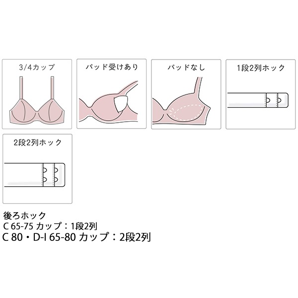 ※お洗濯は、必ず「取り扱い表示」にしたがってください 3/4カップ ホック:後ろホック C65-75カップ:1段2列 C80・D-I65-80カップ:2段2列 パッド:なし パッド受け:あり ストラップ:付け替え不可 サイドボーン: ※商品やサイズによっては柄の位置やデザインが異なる場合があります くっきりと深い谷間を。 バストボリュームを脇から中央に寄せ、きれいな谷間をつくるプッシュアップタイプ。 ・前中心にはクリスタルチャームがついています ・レースとアップリケにはラメ糸を使用しています ・カップのアップリケにはスワロフスキー・クリスタルを使用しています ・アップリケはバラの花をイメージしました 【サルート 22 】 ・ブラジャー(P-UPタイプ):BTJ422 ・Tバックショーツ:PTJ422 ・ハイレッグショーツ:PTJ722 ・ガーターベルト:GTJ622 ・ランジェリードレス:NTJ222 ・キャミソール:CTJ222 |