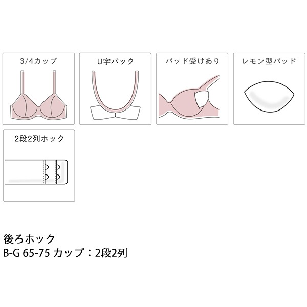 | サイズ | B65、B70、B75 C65、C70、C75 D65、D70、D75 E65、E70、E75 F65、F70、F75 G65、G70、G75 |