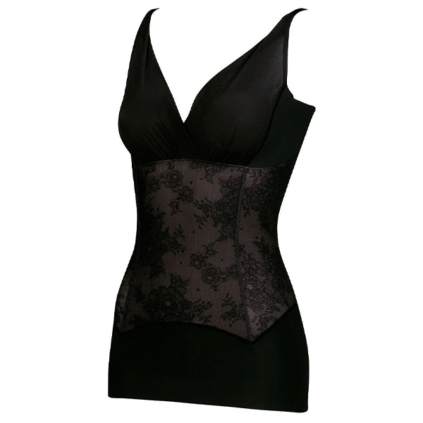 洗濯機可(ネット使用) ※お洗濯は、必ず「取り扱い表示」にしたがってください パッド受けなし 素材のパワー マイルド(ミディアム)タイプ ・“すべりにくい”“ソフトな肌ざわり”という特徴をもつ超極細繊維を使用した「NANOテープ」で、脇の“たるみ”を引き上げて、スムージング ・パワー切り替えのない素材で、おなか・脇腹・背中をスムージングし、きゅうくつ感の少ないつけごこちでスリムなシルエットに ・バスト部分はさまざまなバストサイズに対応できるカシュクールタイプで、吸汗速乾性のあるメッシュ素材を使用 ・背中はUネックラインでアウターから見えにくい ※ブラジャーの上からご着用ください ※「NANOテープ」は、すべりにくく、ソフトな肌ざわりの、テイジンの超極細繊維「ナノフロント」を使用したテープ |