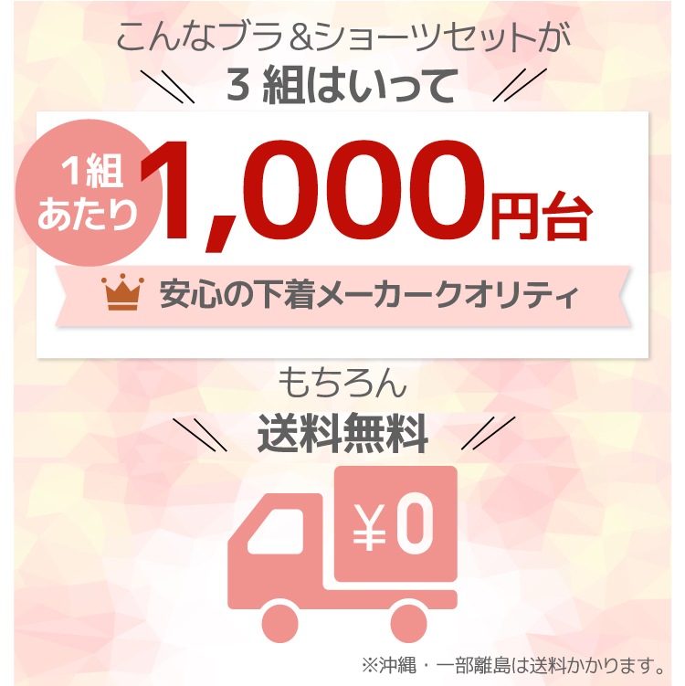 | 注意事項 | ・【選択不可】 デザインのご要望にはお応えできかねます。 タグがついていない商品も含まれる場合がございます。 ・【重複の可能性あり】 複数セットご購入頂いた際に、商品が重複する可能性があります。 ・【ショーツサイズ選択不可】 ショーツのサイズのご指定は出来ません。 ・【送料】 北海道は送料440円、沖縄・離島は送料660円かかります。 |