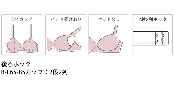| サイズ | B65、B70、B75、B80 C65、C70、C75、C80 D65、D70、D75、D80、D85 E65、E70、E75、E80、E85 F65、F70、F75、F80、F85 G65、G70、G75、G80、G85 H65、H70、H75、H80、H85 I65、I70、I75、I80、I85 |