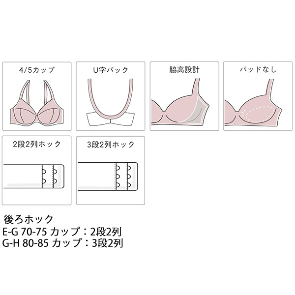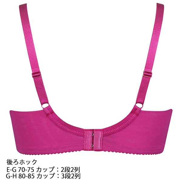 | 詳細情報 | 原産国:日本、中国製 手洗いのみ ※お洗濯は、必ず「取り扱い表示」にしたがってください 4/5カップ ホック:後ろホック E70-G75:2段2列、G80-H85:3段2列 カップの深さ:普通 パッド:なし パッド受け:なし ストラップ:付け替え不可 サイドボーン:あり ※サイズによっては柄の位置やデザインが異なる場合があります ・バストの突出をおさえ、トップの周径を効率的に減らすことで、着やせ効果のあるブラジャー ・バストトップからサイドを押さえるほっそりシートで、ボリュームを上下のカップにきれいに逃してコンパクトにメイク ・バック上辺を折り返し始末にしているので、脇から背中にかけてくいこみにくく、シルエットすっきり ・レースにはラメ糸を使用 ・アップリケにはラメ糸を使用(GR、VIカラー) ・煌びやかな世界観をイメージしたレースを使用 ・バラの花ををイメージしたアップリケを使用 ・G、Hカップは左カップ下にアップリケを追加 |