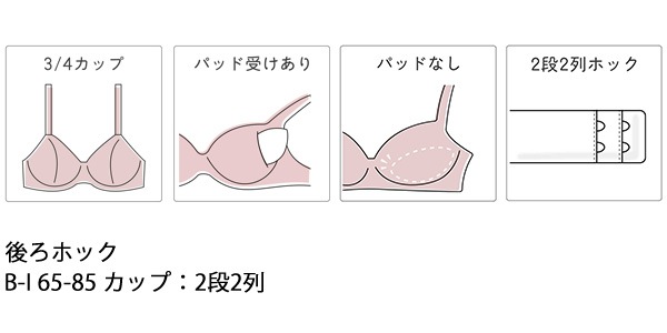 | サイズ | B65、B70、B75、B80、B85 C65、C70、C75、C80、C85 D65、D70、D75、D80、D85 E65、E70、E75、E80、E85 F65、F70、F75、F80、F85 G65、G70、G75、G80、G85 H65、H70、H75、H80、H85 I65、I70、I75、I80、I85 |
