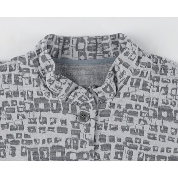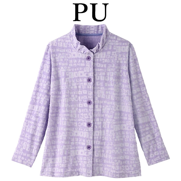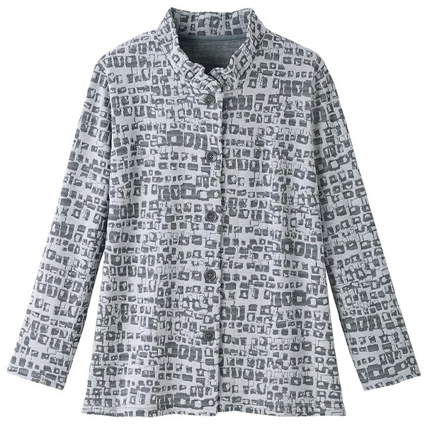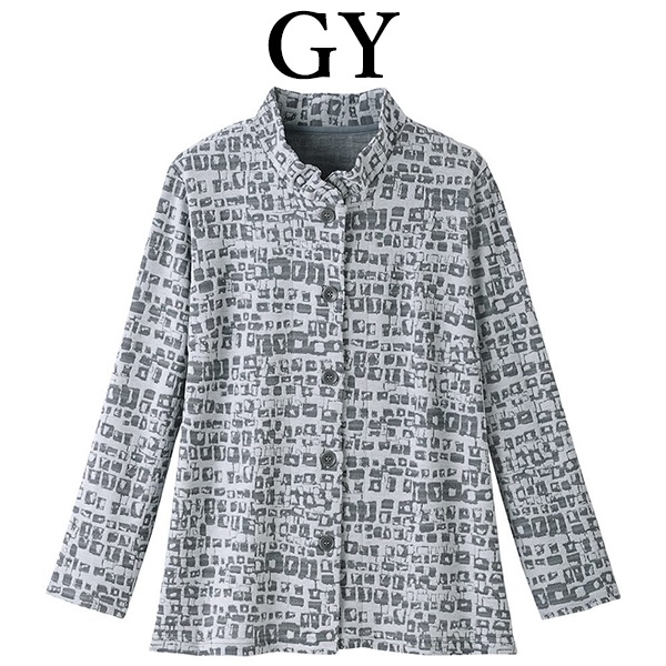 洗濯機可 ※お洗濯は、必ず「取り扱い表示」にしたがってください ・モダンな柄のジャカード素材を使用したブラウスです。 ・ギャザーを寄せたスタンド襟で、やわらかい雰囲気にしました。 ・羽織り物にもおすすめです。 ※商品やサイズによっては柄の位置やデザインが異なる場合があります アウター/トップス/10分袖/前開き |